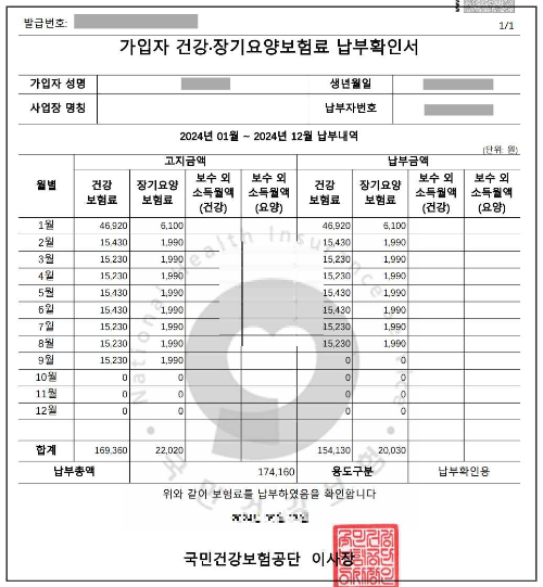 ‘건강보험료 납부확인서’는 직장가입자 또는 지역가입자가 납부한 보험료 내역을 공식적으로 증명해 주는 문서입니다.