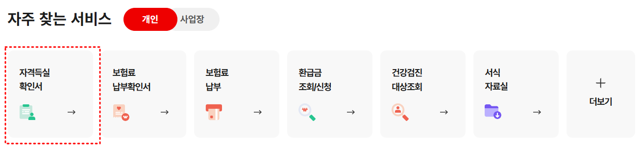 건강보험 자격득실확인서 발급 바로가기 (국민건강보험)