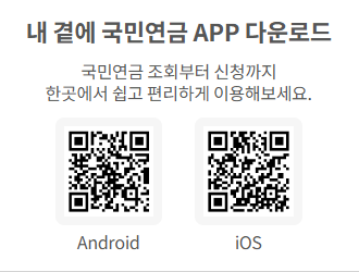 - 안드로이드: Google Play에서 ‘국민연금공단’ 또는 '내 곁에 국민연금' 검색