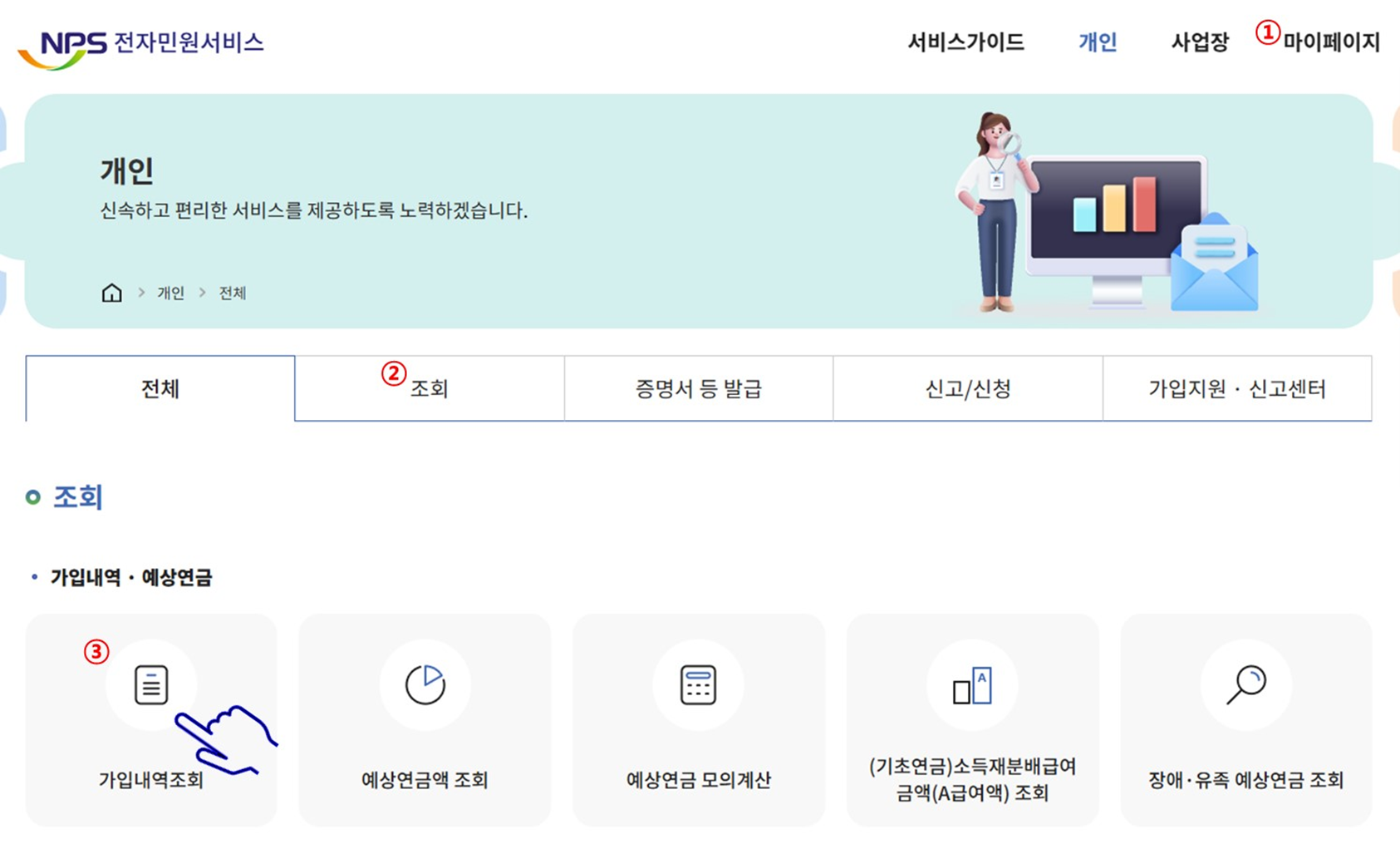 ① 국민연금공단 홈페이지에서 확인하기