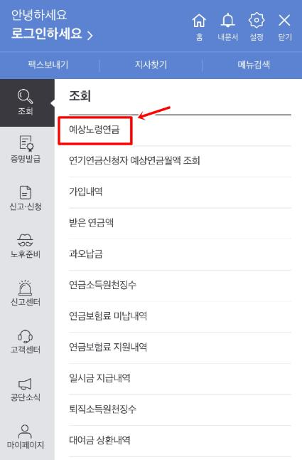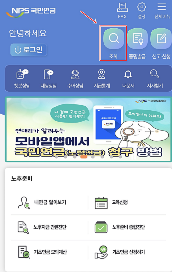- '내 곁에 국민연금' (국민연금공단 공식 앱) 접속