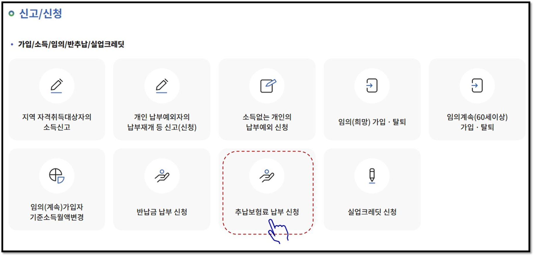| 대상자 | 납부예외자, 임의가입자, 임의계속가입자 등 |