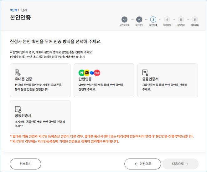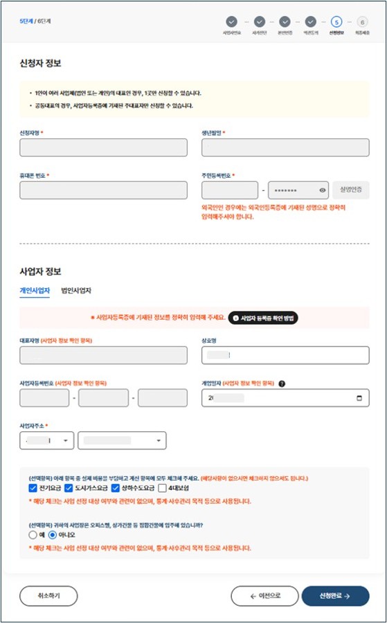 - 사업자등록번호 오류 시 신청이 반려될 수 있음