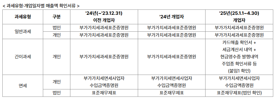 - 2025년 5월 1일 이전 개업한 사업자만 신청 가능