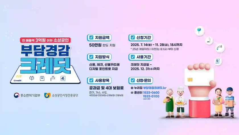 소상공인을 위한 정부 지원정책 중 하나인 소상공인 부담경감 크레딧이 2025년에도 시행됩니다.