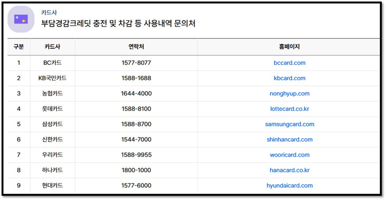 💡 카드사 고객센터에 “부담경감 크레딧 포인트 차감 대상 업종 코드”를 사전에 문의하면 가장 확실합니다.