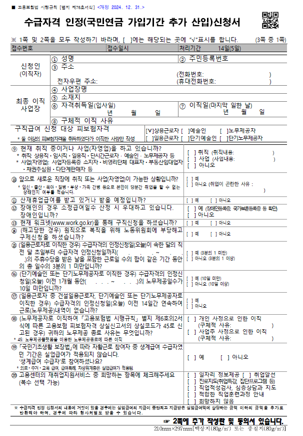 📌 신청서 양식은 고용24 또는 고용보험 홈페이지에서 내려받을 수 있습니다.