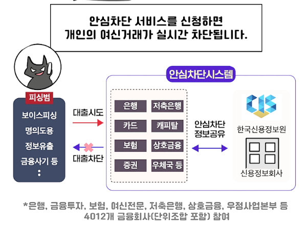 여신거래 안심차단 서비스는 금융소비자의 신용정보 보호 및 금융사기 예방을 위해 광범위한 금융기관들이 참여하고 있는 제도입니다.