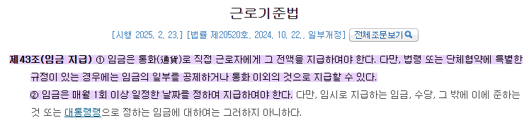 이는 근로기준법 제43조 위반으로, 형사처벌 대상이 될 수 있습니다.