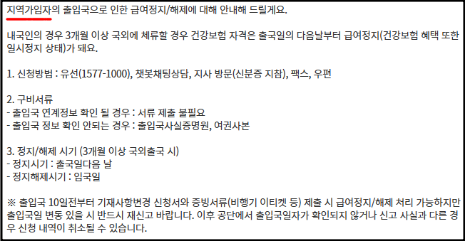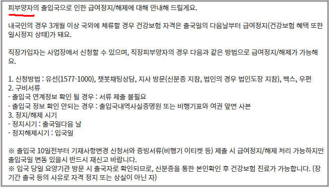 | 정지 대상 | 지역가입자 또는 피부양자 중 3개월 이상 해외체류자 |